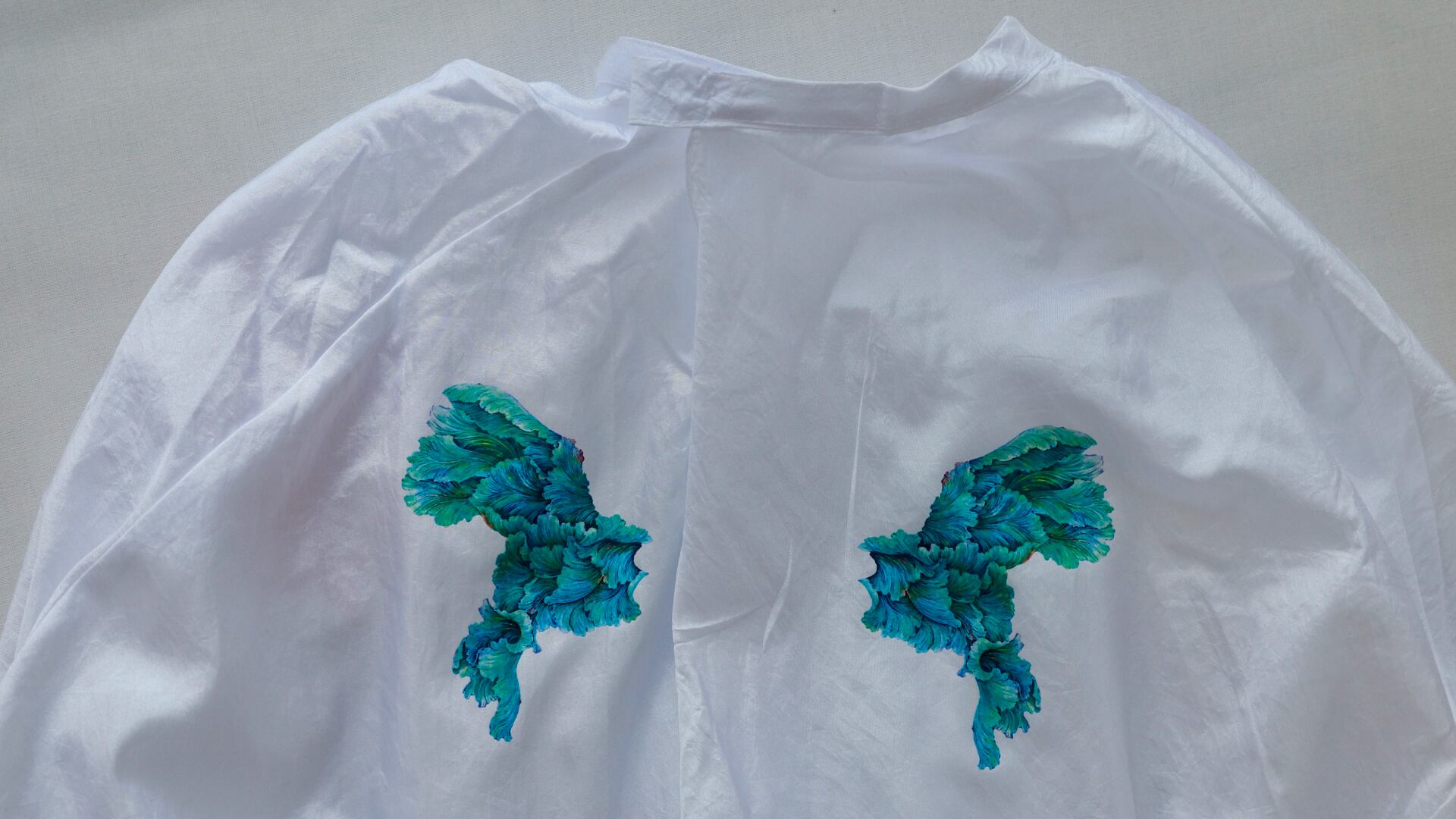 深みのあるブルーとグリーンのグラデーションが、幻想的で洗練された印象を与えます。