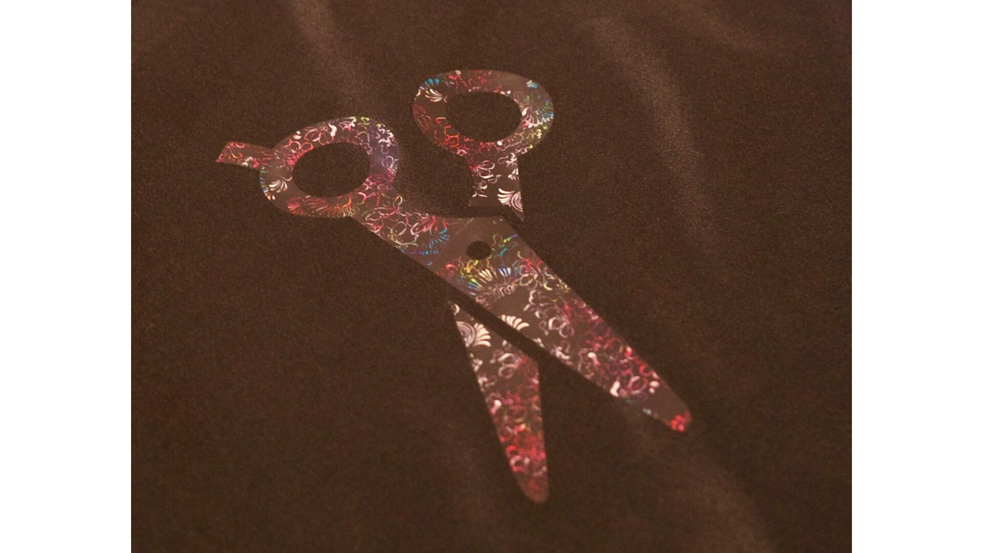 シックなブラックを基調に、繊細な模様が刻まれたハサミ型のPatch。